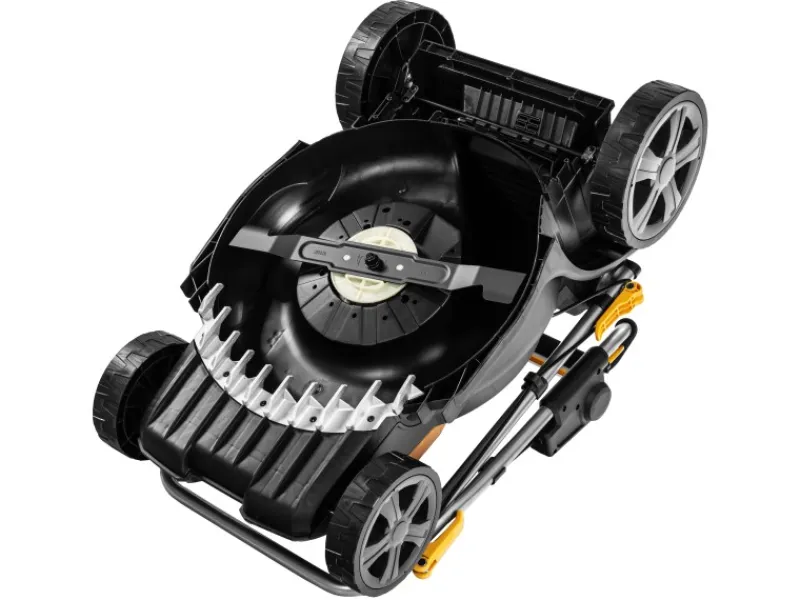 Durch die Verwendung eines akkubetriebenen Rasenmähers erhalten Sie ein geringeres Gewicht, weniger Lärm, eine einfache Bedienung und weniger Wartung im Vergleich zu einem benzinbetriebenen Modell. Der Kunststoff-Mähschutz trägt dazu bei, das Gewicht des Rasenmähers auf nur 14 kg (ohne Akkus) zu reduzieren. Die zwei großen Hinterräder sorgen für eine stabile Rasenmähung, indem sie Unebenheiten des Rasens leichter handhaben können.