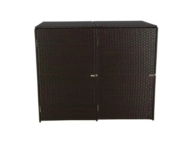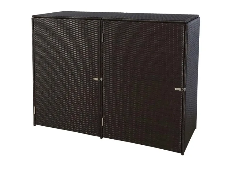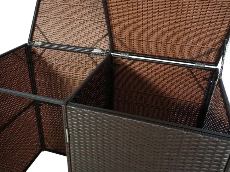 Die Mülltonnenbox überzeugt durch ihr durchdachtes Design und ihre hochwertige Verarbeitung. Der Klappdeckel bleibt dank Halterung sicher offen und erleichtert Dir das Befüllen der Tonnen. Das pflegeleichte Poly-Rattan verleiht der Box eine moderne Optik und ist gleichzeitig robust gegenüber Witterungseinflüssen. Eine clevere Lösung, um Ordnung und Stil in Deinen Garten, Hof oder Eingangsbereich zu bringen.