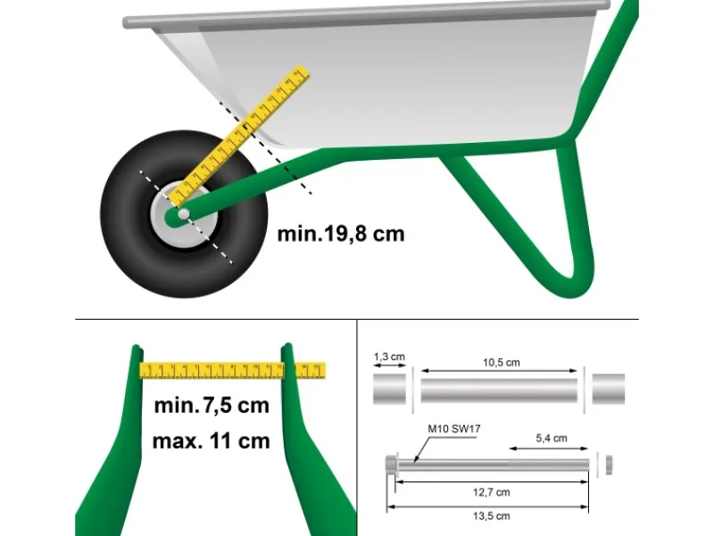 Schubkarrenrad mit Achse- stabiler, tragfähiger Reifen