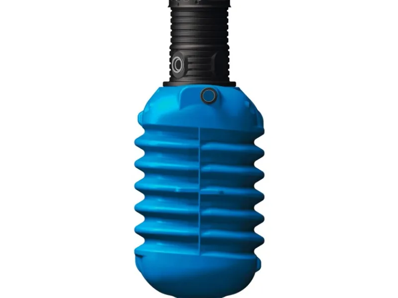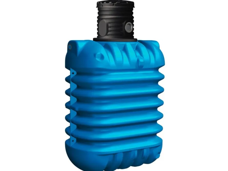 Lieferumfang: Erdtank Modularis mit 1 x Anschlussbohrung inkl. Lippendichtung DN 100, Schachtverlängerung mit 2 x Anschlussbohrungen inkl. Lippendichtung DN 100 (kürzbar von 400 bis 780 mm / 360° drehbar), begehbare Kunststoffabdeckung inkl. Kindersicherung (Farbe schwarz).
