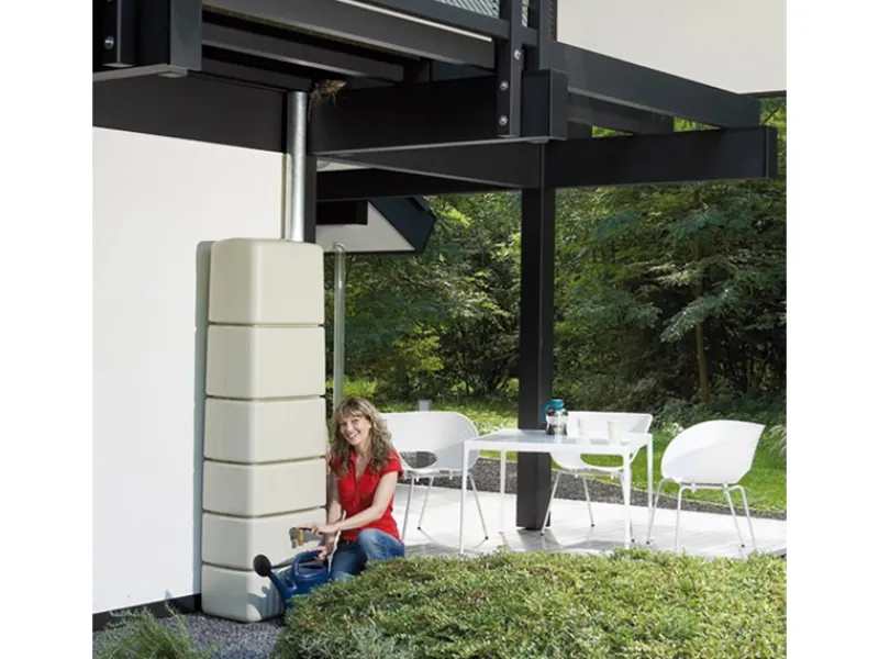 Der Regenwasserbehälter ist aus witterungsbeständigen Materialien mit hohem UV-Schutz gefertigt. Dadurch überzeugt der Tank über eine lange Lebensdauer beim Einsatz im Freien.