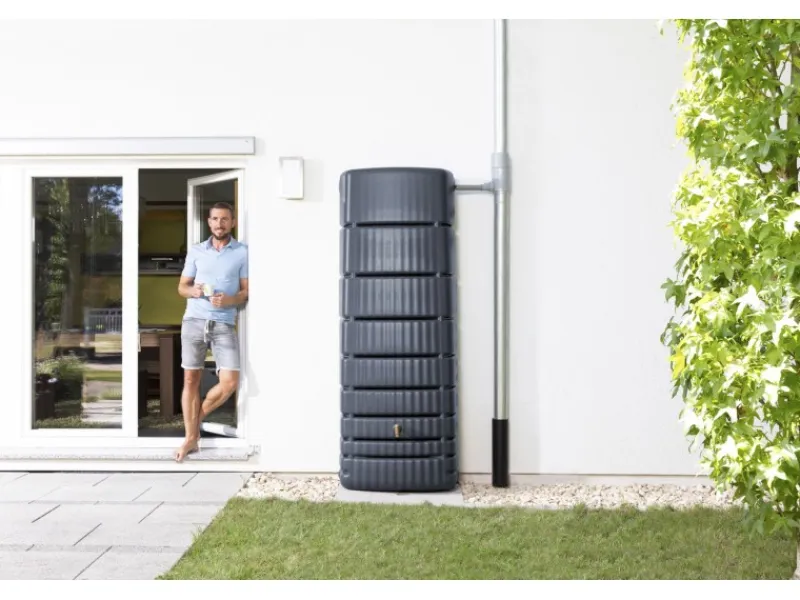 Der 4rain Slim Wandtank in Graphite Grey ist der klassische Regenwasserbehälter mit zeitloser, schlichter Optik. Der Tank zur Aufstellung an der Hauswand, bietet Ihnen ein hohes Speichervolumen von 650 Litern bei geringem Platzbedarf. Entscheiden Sie sich für eine Nachhaltige Gartenbewässerung, schonen Sie wertvolle Ressourcen und vor allem Ihren Geldbeutel. Sammeln Sie ab sofort Regenwasser, das ohnehin kostenlos vom Himmel fällt. Der Behälter verfügt über zwei Gewindeanschlüsse 19 mm (3/4″) zur Wasserentnahme, z. B. für die Montage des mitgelieferten Auslaufhahns, eines Schlauchsets (optionales Zubehör) oder einfach zur Restentleerung vor der Frostperiode. Zusätzlich befindet sich auf der Oberseite der Regentonne eine Deckelöffnung mit einem Durchmesser von 18 Zentimetern. Besonders robust und langlebig, witterungsbeständige Materialien mit hohem UV-Schutz sorgen für eine lange Lebensdauer beim Einsatz im Freien. Qualität „Made in Germany“.