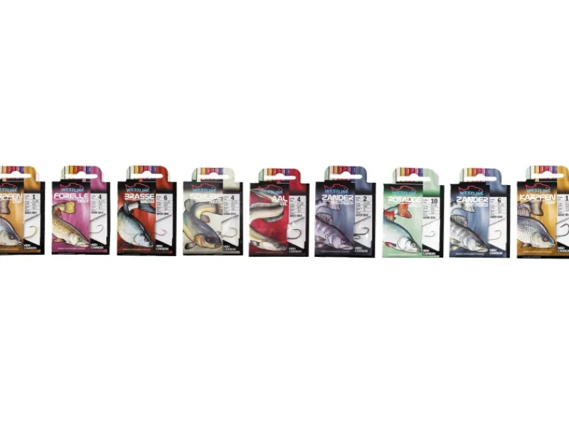 Die WESTLINE High-Carbon Haken haben eine extrem scharfe Schneidspitze. Hakentyp und Hakenöffnung sind speziell auf die Beißgewohnheit des jeweiligen Zielfisches abgestimmt. Jeder Haken ist von Hand an einer Qualitäts-Angelschnur geknüpft und elektronisch auf Festigkeit und Zuverlässigkeit geprüft.