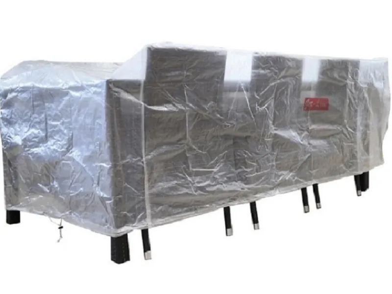 Die transparente Abdeckplane schützt Ihre Gartenmöbel vor Umwelteinflüssen
