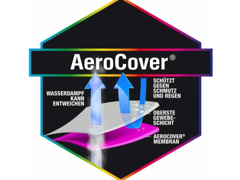 Das atmungsaktive Aerocover-Gewebe ist wasserabweisend und reduziert die Kondensbildung. Zudem sorgt die Aerocover-Membran dafür, dass die Bildung von Mehltau und Schimmel vermieden wird.