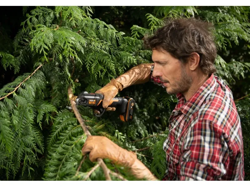 Die Worx Nitro Baumschere macht das Schneiden so intuitiv wie mit einer Handschere. Dank der elektronischen Technologie und der progressiven Schnittfunktion steuerst du die Klingenbewegung feinfühlig über den Auslöser. Für maximale Arbeitssicherheit sorgt der doppelte Lock-off-Schalter, der sowohl für Links- als auch Rechtshänder leicht zugänglich ist und ein unbeabsichtigtes Starten verhindert. So arbeitest du nicht nur effizienter, sondern auch sicherer.