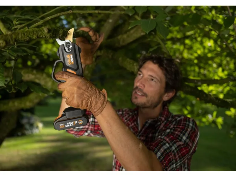 Der Worx Astschneider wird mit einem modernen 20 V Lithium-Ionen Akku der Worx PowerShare Akkuplattform betrieben. Der Akku überzeugt mit einer geringen Selbstentladung und verhindert den Memory-Effekt. Die Worx Powershare-Akkus kannst du mit allen 20 V Worx Garten- und Elektrowerkzeugen nutzen. So sparst du dir den Kauf mehrerer Akkus und hast mehr Lagerplatz im Keller oder Geräteschuppen.