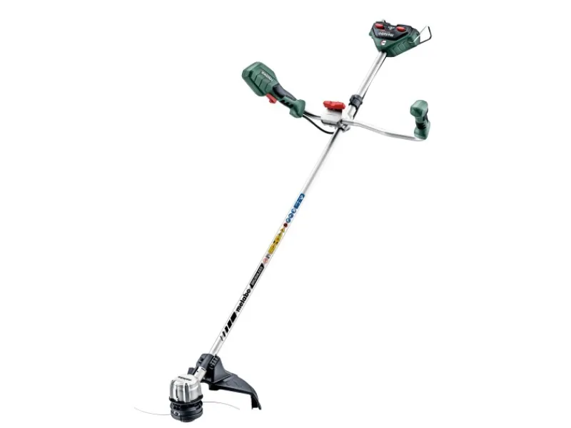 Im Lieferumfang enthalten sind der Zweihandgriff, der Rückentragegurt, die Schutzhaube, die Doppelfadenspule (Faden Ø 2 mm, 4 m), ein 3-flügeliges Dickichtmesser, ein Adapter für Messer, ein Kombischlüssel, ein Arretierstift. Akkupack und Ladegerät sind nicht im Lieferumfang enthalten.
