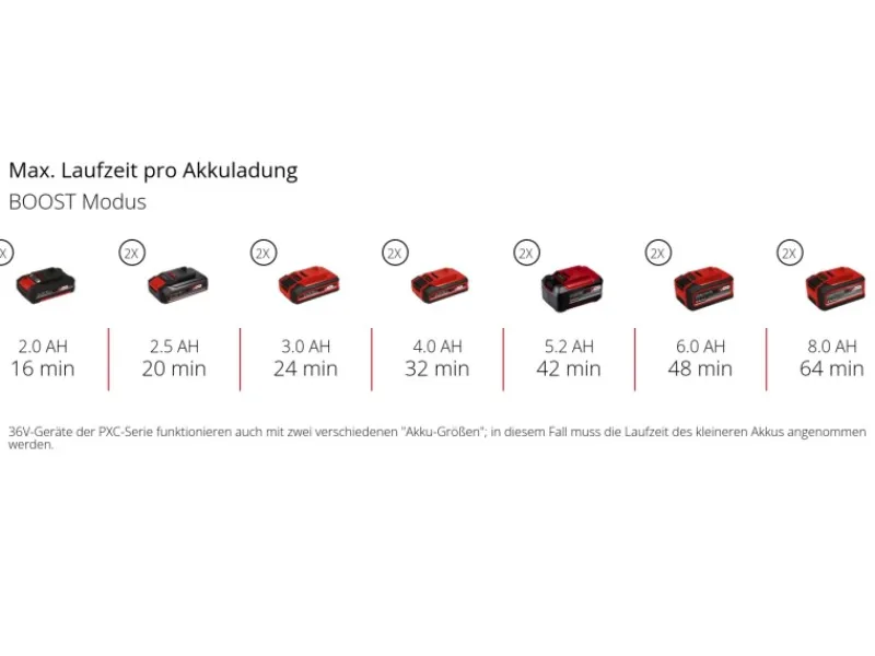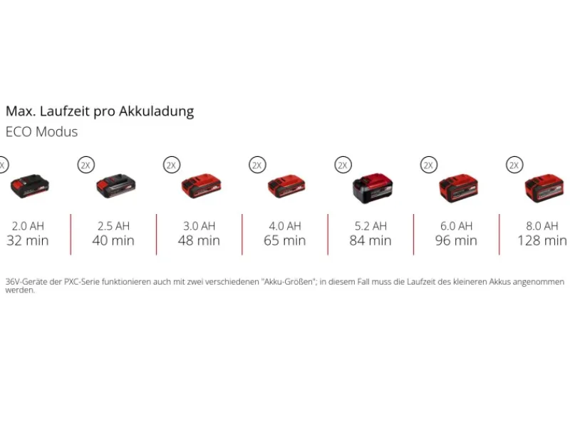 Mitglied der Power X-Change Familie, 2 x 18 V Batterie notwendig