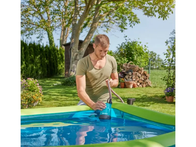 Mit der Gardena Akku-Klarwasser-Tauchpumpe 2000/2 18V P4A lässt sich Wasser flexibel aus- bzw. umpumpen. Egal, wo sich der nächste Stromanschluss befindet, dank Lithium-Ionen Akku ist die Pumpe flexibel in der Handhabung. Mit drei Leistungsstufen lässt sich die Pumpenleistung auf die jeweiligen Bedürfnisse anpassen, ob zum Auspumpen kleinerer Wasserbecken, vollgelaufener Boote oder für die Gartendusche. Akku und Ladegerät sind im Set enthalten. Die Energie liefert ein 18 V System Akku der Power for All Alliance, basierend auf der Technologie von Bosch. Dieser passt in eine Vielzahl anderer Gartengeräte von Gardena, kann aber auch markenübergreifend mit zahlreichen weiteren Produkten aus der Allianz rund um das gesamte Zuhause verwendet werden. Dank großer Schlauchanschlüsse für 19 mm (3/4″) und 25 mm (1″) Schläuche lassen sich mit einer Akkuladung bis zu 860 Liter transportieren. Der Standfuß mit integriertem Filtersystem verhindert das Ansaugen von Schmutzpartikeln. Flachabsaugung bis 5 mm Restwasserhöhe. Integrierte Trockenlaufsicherung und 5/10/15 Minuten Timerfunktion. Die Pumpe ist auch für kleinere Bewässerungsanwendungen, z.B. mit verbrauchtem Wasser aus dem Planschbecken, geeignet.