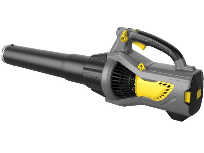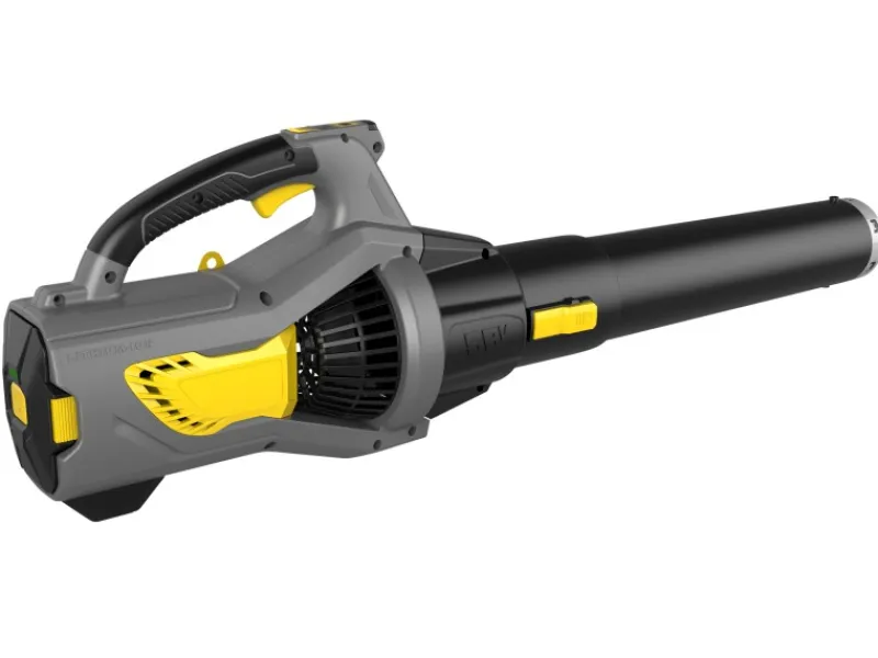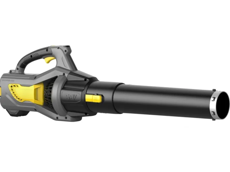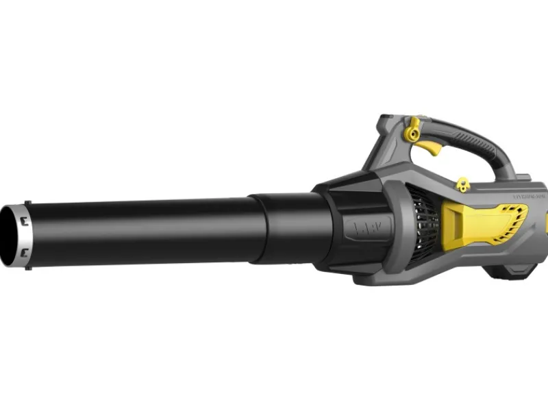 Leistungsstarker Laubbläser mit 1300 W kohlenstofffreiem Motor und 58 V / 4,0 Ah-Batterie, für bis zu 30 Minuten Arbeit, abhängig von der Blasleistung. Die Maschine verfügt über einen Turbo-Funktionsknopf, der bei Bedarf für kürzere Zeiträume zusätzliche Kraft bietet. Um dem Akku zu schützen, wird die Turboleistung verringert in die gleichen Maße der Entladung des Akkus.