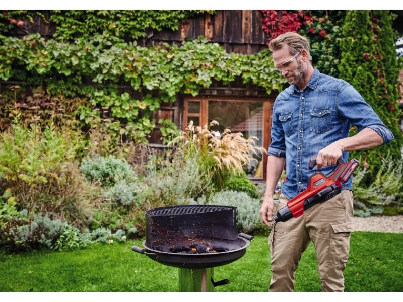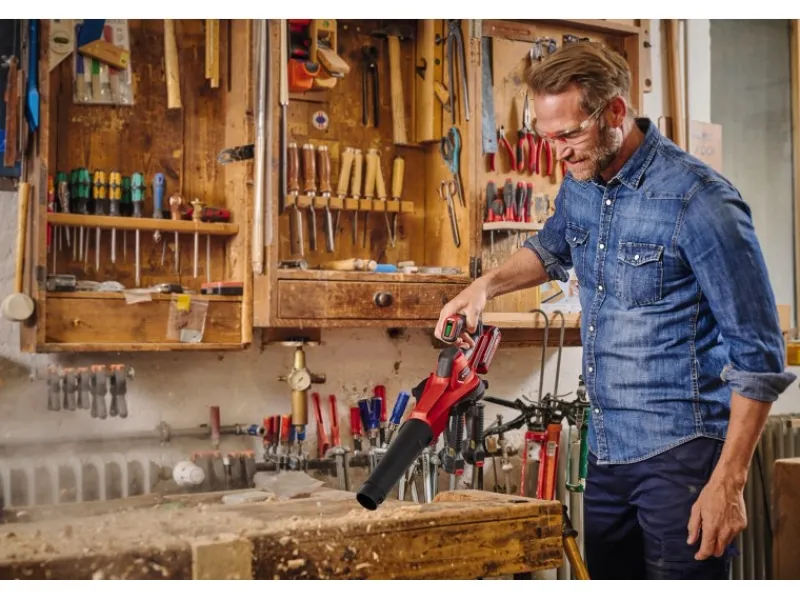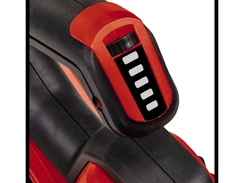 Das mehrteilige Blasrohr ermöglicht vielseitige Anwendungen: vom Laubbläser mit langem Blasrohr über den Werkstattbläser mit mittlerem Blasrohr bis hin zur Grill-Anzündhilfe mit kurzem Präzisions-Blasrohr. Die elektronische Drehzahlregulierung passt sich dabei den Anforderungen an. Eine LED-Anzeige zeigt die eingestellte Drehzahl an.