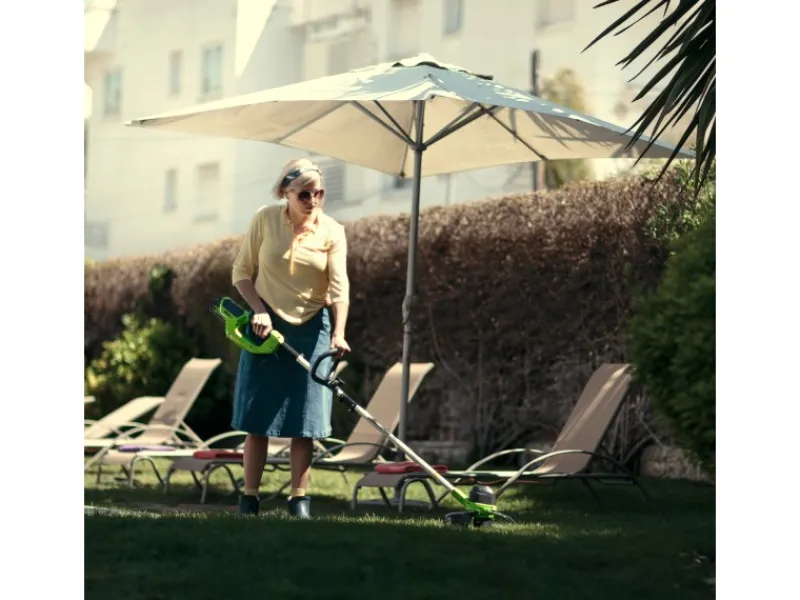 Der Akku-Trimmer ist leicht und handlich. Ein verstellbarer Zusatzhandgriff und ein vollständig einstellbarer Frontgriff machen das Gärtnern leicht. Durch den stufenlos verstellbaren Teleskopstab sind auch längere Arbeiten komfortabel und rückenschonend möglich. Der geteilte Schaft erleichert Ihnen den Transport und die Lagerung.
