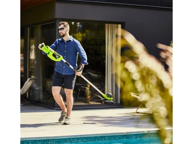 Der Freischneider wird mit einem 40 V-Lithium-Ionen-Akku betrieben. Als Teil der Greenworks 40V-Familie ist der Akku flexibel und kann in allen anderen passenden Geräten wie Rasenmähern, Heckenscheren oder Kettensägen eingesetzt werden.