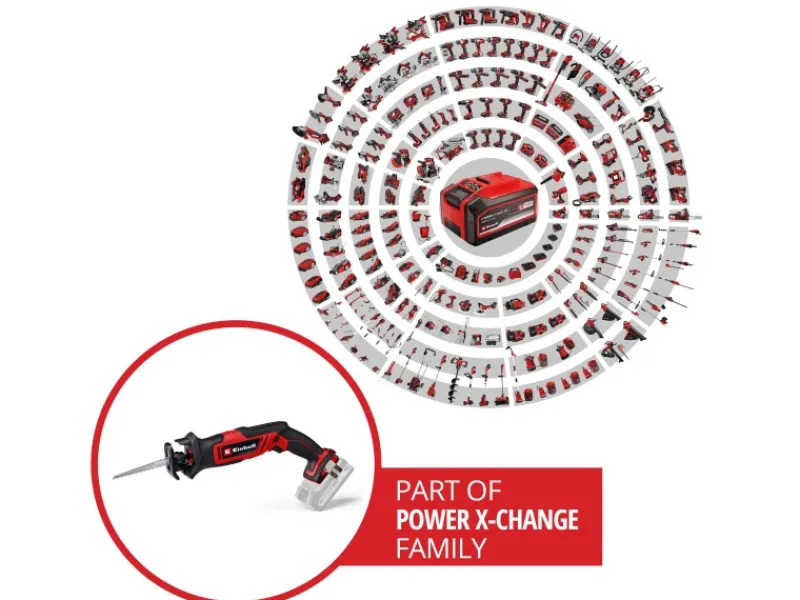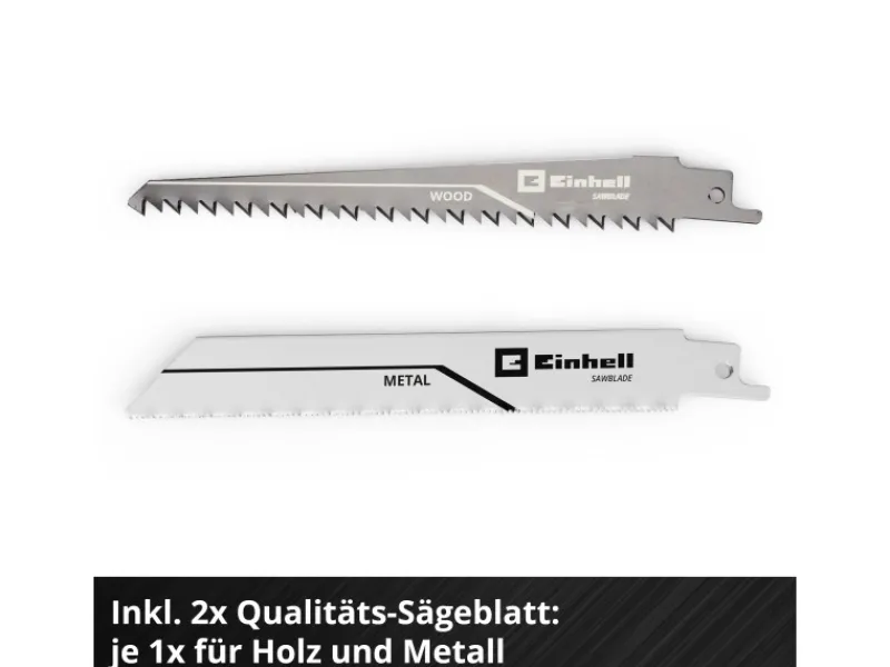 Per Drehzahlelektronik lässt sich die Leistung an verschiedene Materialien und den jeweiligen Einsatz optimal anpassen. Die Akku-Säbelsäge arbeitet mit 13 mm Hubhöhe und schafft dabei eine Schnittleistung bis 50 mm in Holz und 4 mm in Stahl. Das Sägeblatt kann werkzeuglos und schnell gewechselt und in der 0,6 mm – 1,6 mm Sägeblattaufnahme eingesetzt werden.