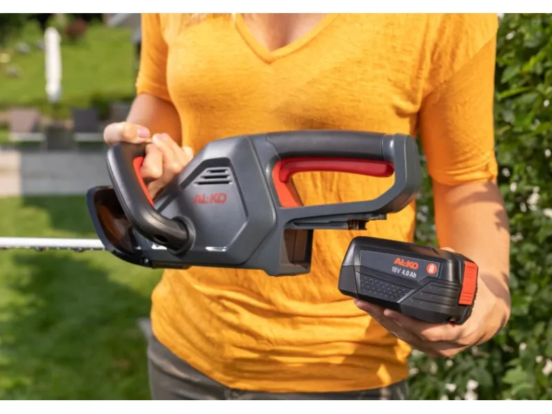 Die HT 1845 wird von einem Al-Ko 18 V Bosch Home and Garden compatible-Akku gespeist. Bei Bedarf betreiben Sie mit diesem Akku-System unterschiedliche Al-Ko Geräte mit ein und demselben Akku – und sparen dadurch bares Geld.