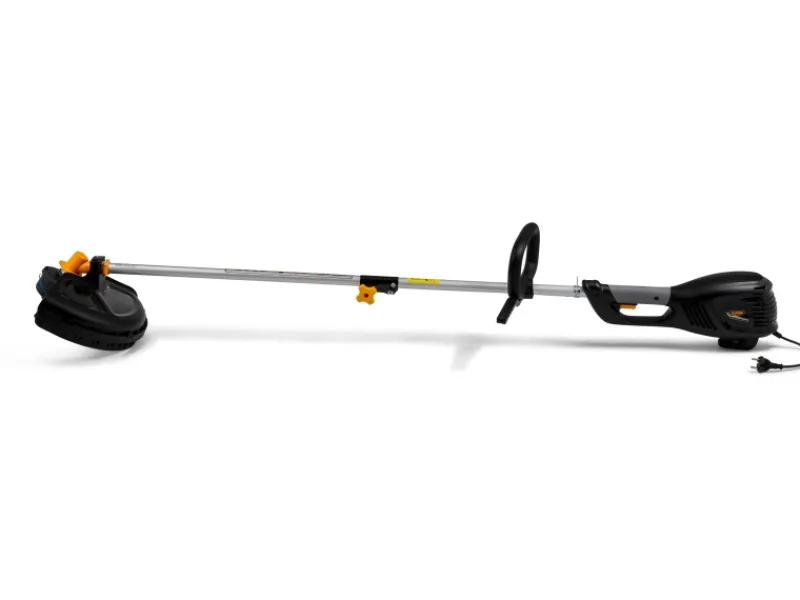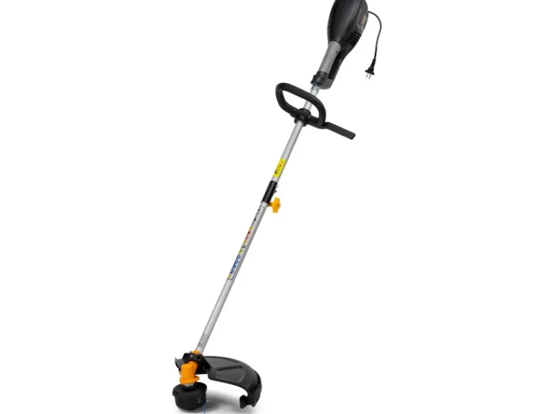 Die Alpina Elektro-Motorsense ABR 1.0 EJ ist handlich, leicht und kraftvoll! Der ABR 1.0 EJ bietet Dir die Möglichkeit ihn als Rasentrimmer oder als Motorsense einzusetzen. In beiden Fällen wird das Schnittsystem von einem 1000 Watt starken Motor angetrieben. Bei der Nutzung der Rasentrimmerfunktion steht Dir eine Tap&Go Doppelfadenspule mit einer Schnittbreite von 37 cm zur Verfügung. Das Tap&Go System erlaubt eine einfache Verlängerung des Schnittfadens (Ø 1,8 mm) durch auftippen auf dem Boden. Bei der Nutzung der Freischneiderfunktion kommt das 20 cm breite 3-T-Messer zum Einsatz, das sich mühelos durch Dein Gestrüpp kämpft. Der verstellbare Handgriff ermöglicht eine komfortable Handhabung und der Tragegurt sorgt für ein ermüdungsfreies Arbeiten. Dank des teilbaren Schafts wird der Platzbedarf bei der Lagerung minimiert. Im Lieferumfang ist ein 3-T-Messer, eine Tap&Go Doppelfadenspule und ein Tragegurt enthalten.