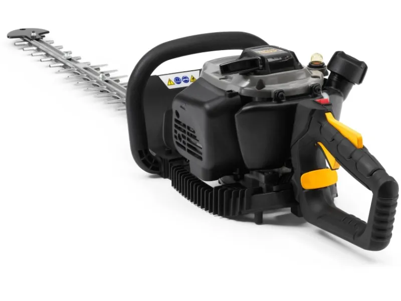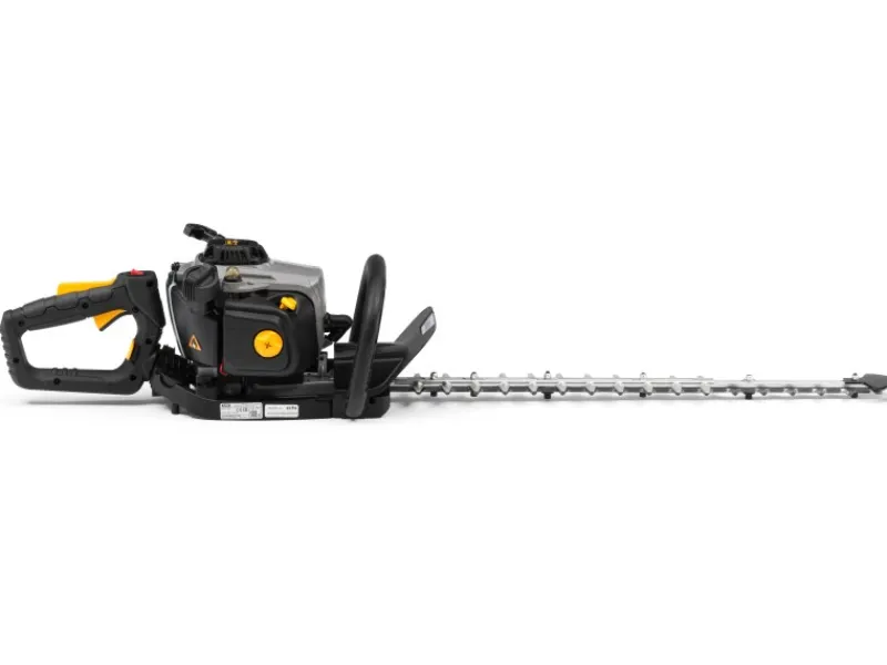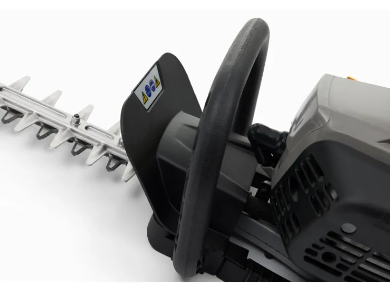 Die Pflege Deiner Sträucher und Hecken ist mit der leistungsstarken, aber leichten und einfach zu bedienenden Alpina Benzin-Heckenschere AHT 555 mehr Vergnügen als Pflicht! Die AHT 555 ist mit einem schnell arbeitenden doppelseitiger 70 cm Messer ausgestattet, das diamantgeschliffen, lasergeschnitten und verzinnt wurde, um eine außergewöhnliche Schnittleistung und überlegene Haltbarkeit zu erzielen. Hiermit steht dir eine Schnittlänge von 56 cm zur Verfügung die Zweie bis zu einer dicke von 27 mm problemlos zerschneidet. Der Schwertspitzenschutz sorgt bei den Schnittarbeiten an Wegen und Mauern für die notwendige Sicherheit. Für mehr Komfort bei den Schnittarbeiten sorgt das Mehrpunkt-Federsystem, welches Vibrationsbelastung im Griff reduziert. Zudem kann der Handgriff in 3 verschieden Positionen um 180° eingestellt werden, damit vertikale und horizontale Schnitte leicht von der Hand gehen. Ausgestattet mit einem effizienten 22,5 cm³ Benzinmotor, der mit seiner Leistung von 0,65 kW / 0,9 PS überzeugt. Das Easy-Start-System der AHT 555 ermöglicht einen schnellen Start in nur wenigen Zügen. Im Lieferumfang ist ein Schwertschutz enthalten.