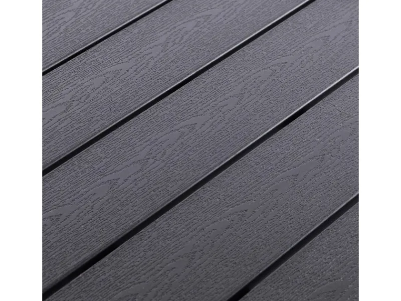 Das elegante Design in Anthrazit mit einer stilvollen Tischplatte in Grau aus Holzimitat fügt sich harmonisch in jede Gartengestaltung ein.
