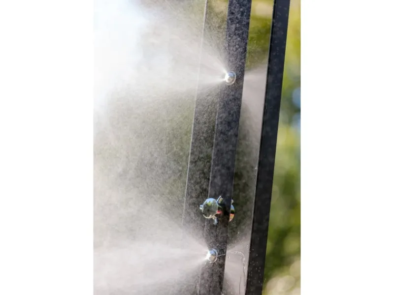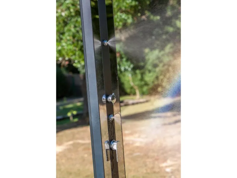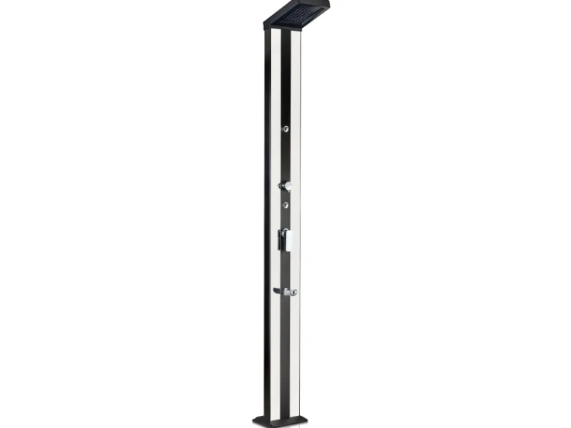 Mit einem großzügigen 38 l Wassertank, der durch Sonnenenergie erwärmt wird, bietet diese Dusche warmes Wasser ganz ohne Stromanschluss. Der verstellbare Duschkopf sorgt für ein angenehmes Duscherlebnis, während der integrierte Fußwaschhahn zusätzlichen Komfort bietet.