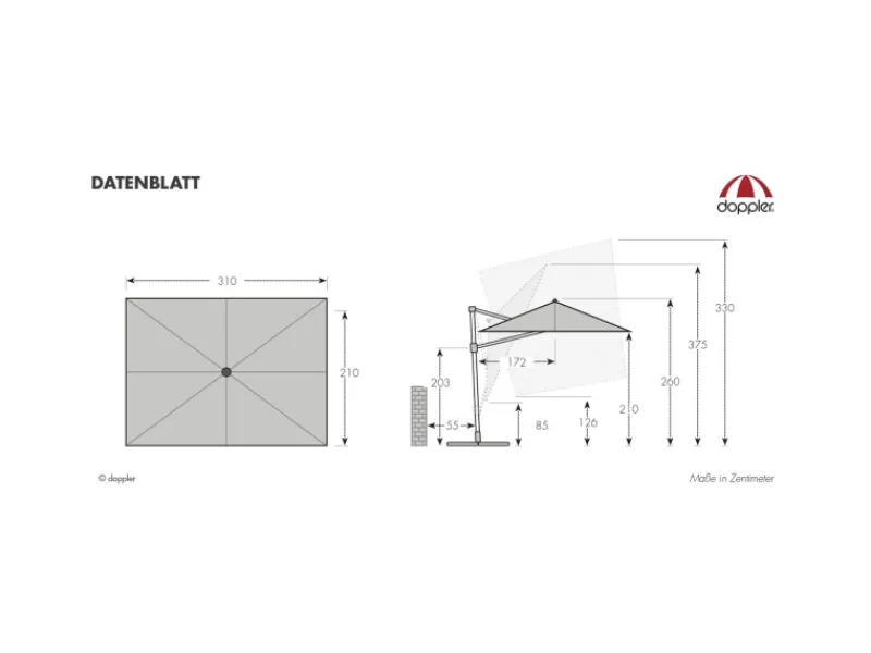 Mindestgewicht des Schirmständers: 140 kg (separat erhältlich)
