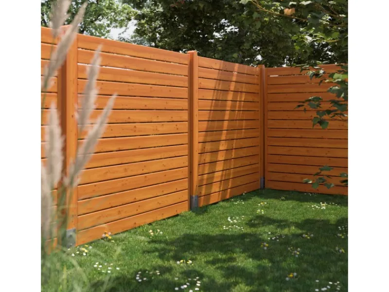 Die Täfelung des Zaunes wurde aus getrockneten Kiefernholz gefertigt, das eine winddichte Konstruktion garantiert. Die Oberfläche des Holzes ist drei-Schicht-lackiert, dies schützt das Holz vor Wetterverhältnissen und erhält den Farbton für viele Jahre.