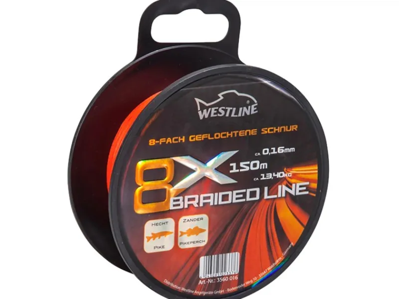 Die Westline 8X Braided Line 16 Orange ist eine 8-fach geflochtene Hochleistungsschnur der Spitzenklasse. Bevor Sie die Produktionsstätte verlässt wird diese Schnur einem computergesteuerten Prüfverfahren unterzogen und anschließend vom Qualitätsmanagement abgesegnet. Durch die enge Flechtung wird vermieden, dass die Schnur Wasser aufnehmen kann und ermöglicht Ihnen weite Würfe, gerade beim Spinnfischen. Eine extrem weiche und glatte Oberfläche sind außerdem Kennzeichen dieser Schnur. Die Farbe der Schnur ermöglicht eine perfekte Sichtbarkeit, gerade auch bei schlechten Wetterverhältnissen.
