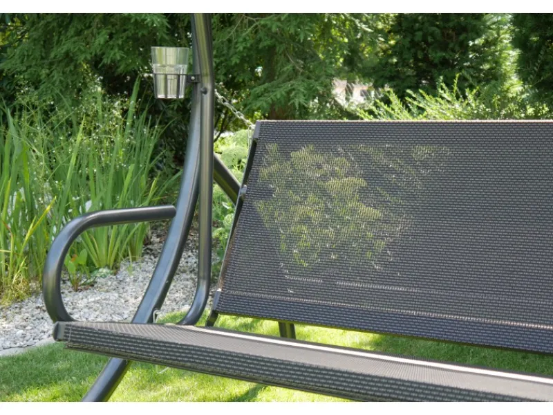 Die Angerer Hollywoodschaukel Tolar ist dank der praktischen Bettfunktion mit wenigen Handgriffen zur Liegefläche abklappbar. Das Gestell besteht aus verzinktem und pulverbeschichtetem Stahl. Das moderne Sonnendach sowie die Sitzfläche bestehen aus wetterfestem Primetex Gewebe. Die Kissenbezüge aus besonders hochwertigem, strukturiertem Möbelstoff sind abnehmbar und waschbar.