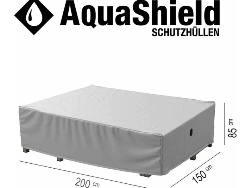 Die AquaShield Sitzgruppenhülle 200 cm x 150 cm x 85 cm sorgt für den idealen Schutz Ihrer Gartenmöbel-Sitzgruppe. Dank des Active Air Systems wird die Bildung von Kondensation und Schimmel reduziert. Die Schutzhülle kann unten durch ein Zugband abgedichtet werden und sie verfügt über 4 Gummiösen in den Ecken zur optimalen Befestigung.