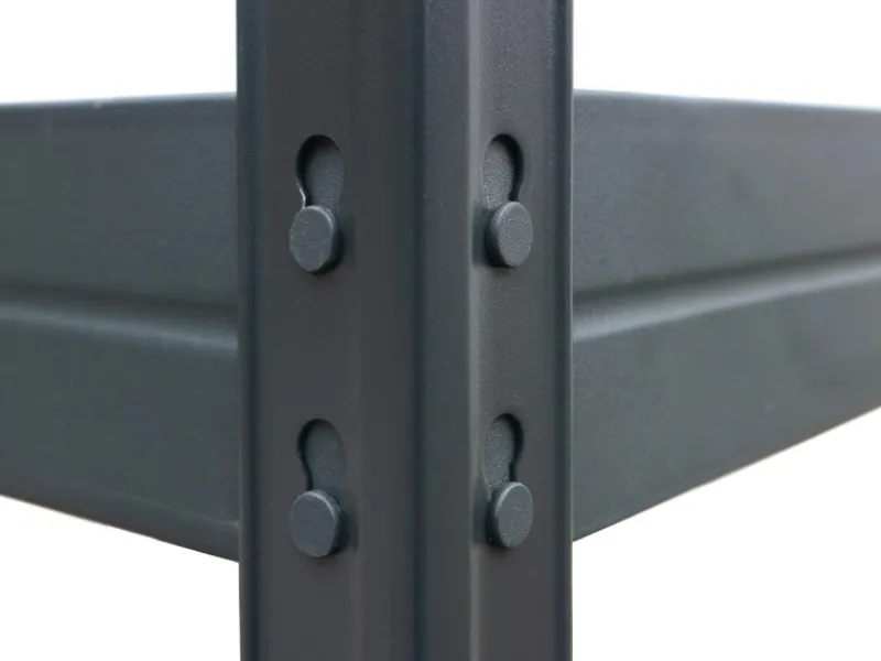 Das Ar Shelving Rivet Schwerlast-Steckregal mit HDF-Böden hat eine Tragkraft von 210 kg pro Boden bei gleichmäßiger Verteilung. Die Gesamttragkraft beträgt 1050 kg. Das Regal ist in Anthrazitgrau pulverbeschichtet und ist widerstandsfähig gegen Korrosion und mechanische Beschädigungen. Darüber hinaus zeichnet es sich mit einem schönen Design und einer einfachen Wartung aus. Das Regal kann auch als zwei gleich große Regale aufgebaut werden, wobei ihre Tragkraft pro Boden gleich bleibt.