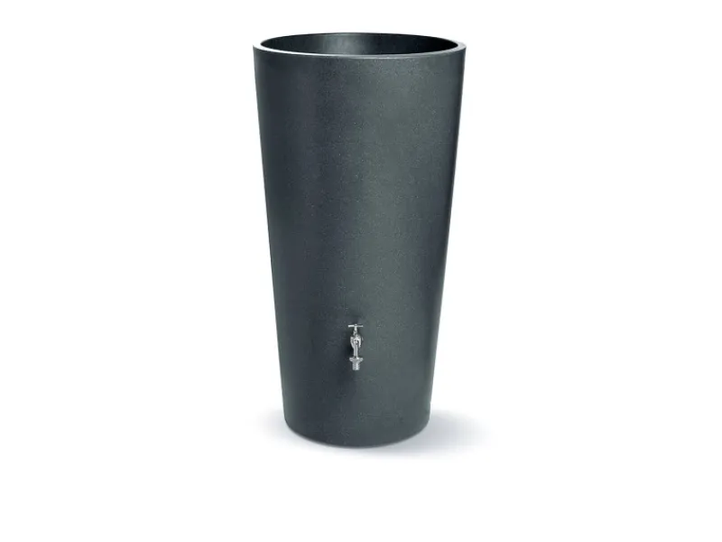 Die moderne vasenförmige Regentonne fasst bis zu 150 Liter Regenwasser und besitzt eine fest integrierte Pflanzenkammer ( Maß: Breite oben 53,5 cm Tiefe 17,5 cm ).