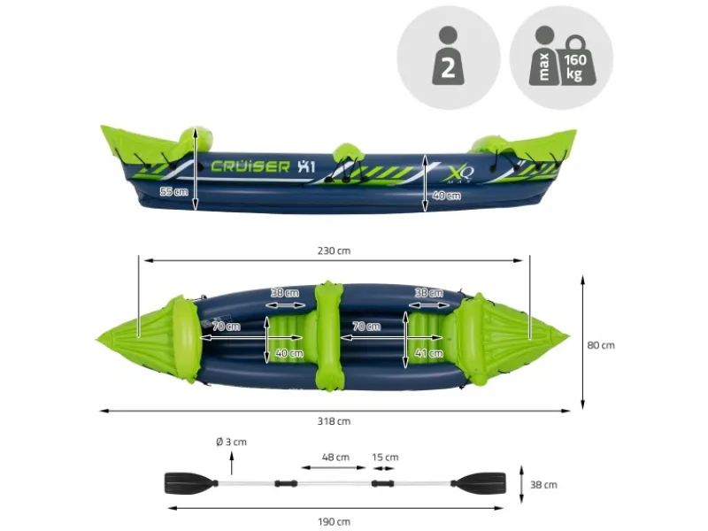 An einem sonnigen Sommertag eine Tour auf dem Fluss zu machen ist eine super Beschäftigung, nicht nur, dass du an der frischen Lust bist, sondern betätigst du dich zudem auch sportlich. Durch das mitgelieferte Paddel, kannst du mit dem Kajak auch auf stillen Gewässern schnell unterwegs sein. Die spitze Form des Kajaks bricht das Wasser und sorgt so im Vergleich zum herkömmlichen Schlauchboot für höhere Geschwindigkeiten. Das Paddel dient nicht nur zum Geschwindigkeits-Aufbau, sondern auch zum lenken und manövrieren. Sei bereit für den Sommer, und kauf dir das aufblasbare Kajak: Cruiser X1 bei ECD Germany.