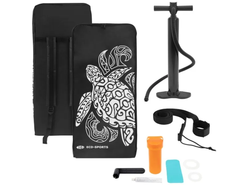 Da es aufblasbar ist, lässt es sich ganz leicht in der mitgelieferten Tragetasche auf Reisen transportieren. In der Tragetasche finden zusätzlich ein Zubehör-Set, Paddel und Pumpe Platz. Die Tasche besteht aus einem wasserabweisenden, robusten und strapazierfähigen Material. Somit können Sie auch Ihre Wertgegenstände und Kleidung vor Nässe und Sand schützen.