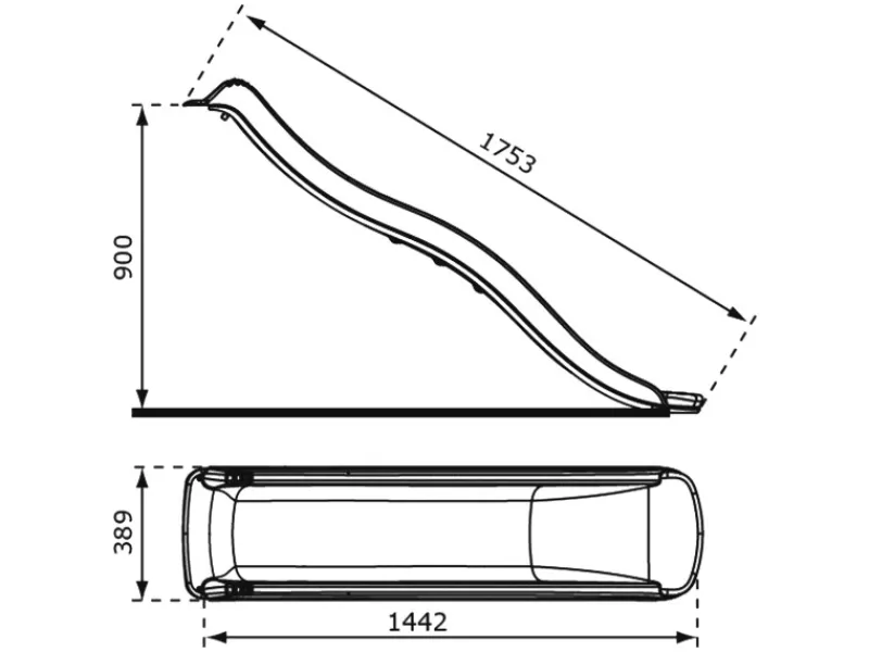 Mit einer Länge von ca. 175 cm ist die Rutsche perfekt für Plattformen mit einer Höhe von etwa 90 cm geeignet. Zur Befestigung werden Senkkopfschrauben mit einem Durchmesser von 5 bis 6 mm benötigt, die jedoch nicht im Lieferumfang enthalten sind.