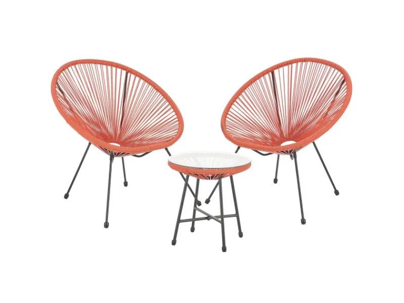 Sitzgruppe mit Gestell aus pulverbeschichtetem Stahl mit Poly-Rattan Kunststoffgeflecht