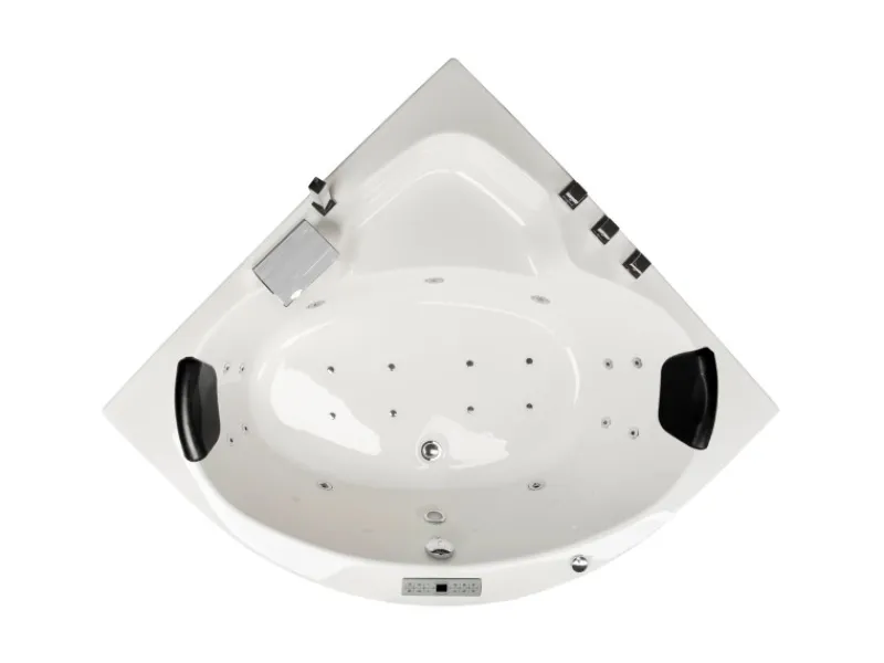 Dank der Leichtbauweise ist der Whirlpool Maui perfekt für den Innenbereich geeignet. Seine Rückenschrägen und die gepolsterten Kopfstützen sorgen für eine komfortable Sitzposition. Die dreieckige Raumsparwanne ist mit 21 leistungsstarken Massagedüsen ausgestattet, welche sich in 5 Seitendüsen, 8 Bodendüsen und 8 Rückendüsen aufteilen. Für noch mehr Komfort und Power sind ultraflache Slimline Seitendüsen verbaut. Diese schmiegen sich nahezu nahtlos in die Wanne ein und können zudem einzeln zugedreht werden. Dadurch kann der Druck auf den Rückendüsen erhöht werden.
