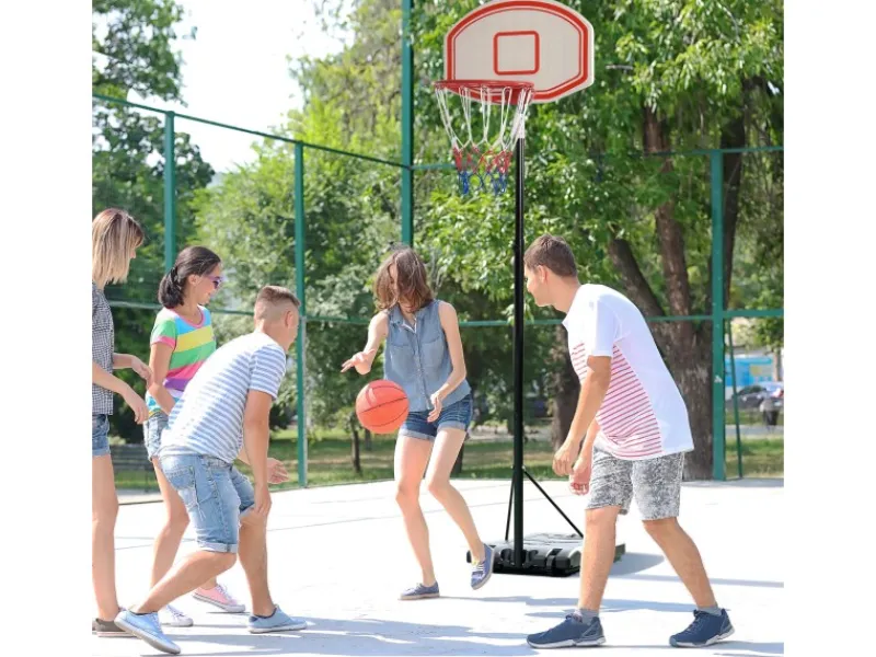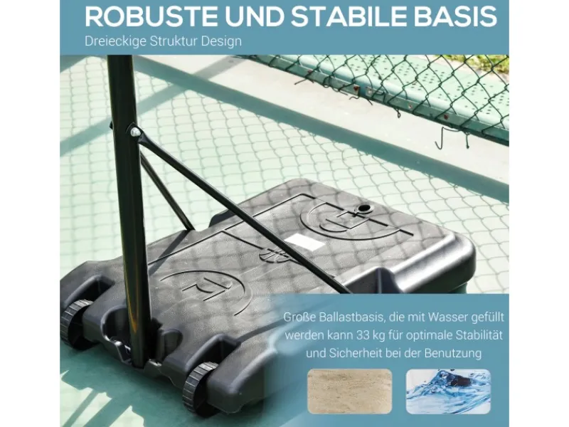 – Die Basis des Basketballständers kann mit 33 kg Wasser für mehr Stabilität gefüllt werden