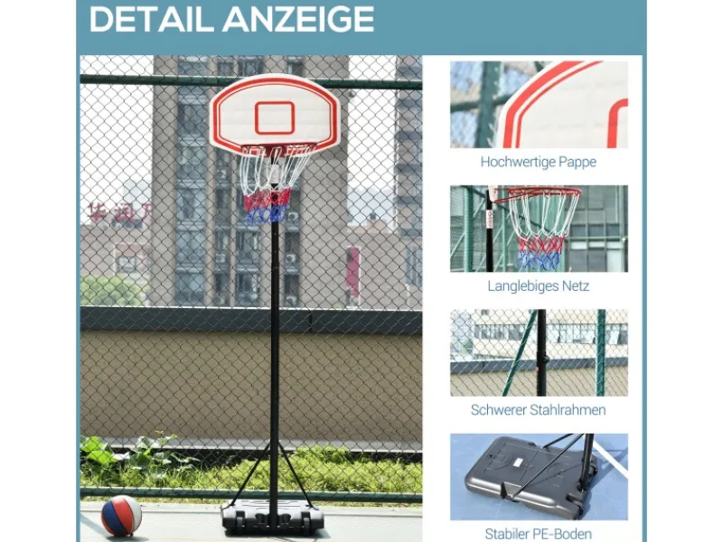 – Der Basketballkorb ist auf 5 verschiedene Höhen einstellbar, von 175 cm bis 215 cm, um sich jedem Spieler anzupassen