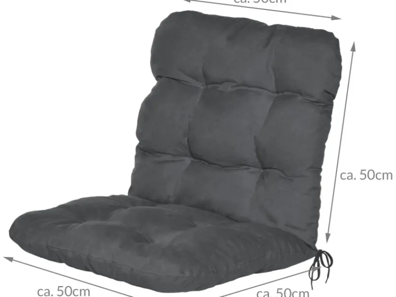 Außerdem sind am Sitzkissen jeweils links und rechts Befestigungsschnüre zum Fixieren des Sitz-Polsters, damit Ihre Auflage immer passend und rutschfest aufliegt.UV-Lichtechtheit 5Der Stoff der Gartenstuhl Hochlehner Auflagen mit hoher Rückenlehne besteht aus 100% Polyester und hat eine UV-Lichtechtheit von 5 um ein Ausbleichen durch das Sonnenlicht zu verhindern. Dank ausgewählter Farben und stilvollen Heftungen sind die Kissen auf Ihrer Terrasse oder im Garten der Hingucker schlechthin.Produktdetails:Maße der Auflage: ca. 120x50x8cm Maße der Sitzfläche: ca. 50x50cm Maße des Rückenpolster: ca. 70x50cm Material des Bezugs: 40% Polyester und 60% Baumwolle Stoff: 180g/m² Füllung: 100% Polyurethan Schaumflocke UV-Lichtechtheit: 5 Befestigung: Befestigungsband auf der Rückseite, 2x Befestigungsschnüre an der Sitzfläche Pflegehinweis: HandwäscheDie angegebenen Maße entsprechen der Stoffgröße von Naht zu Naht gemessen.