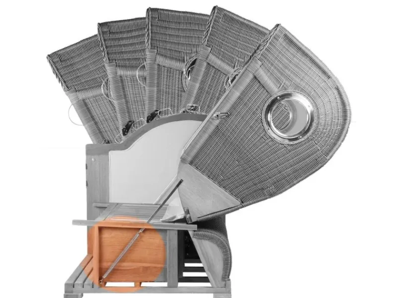 Bullaugen, einhängbare Fußstützen, verstellbare Rückenlehne, schwenkbare XL Bistrotische