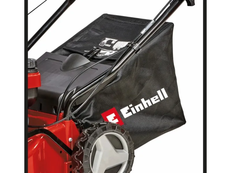 Der Benzin-Rasenmäher von Einhell verfügt über eine siebenstufige zentrale Schnitthöhenverstellung von 25 mm bis 75 mm. Mit dem ergonomischen und klappbaren Führungsholm gestaltet sich das Arbeiten angenehmer und ermöglicht ein einfaches Verstauen. Ein extrahoher Auswurfkanal sorgt für außergewöhnlich gutes Fangverhalten und der große Grasfangkorb verfügt über eine Füllstandsanzeige und zwei Griffe zum einfachen Entleeren.