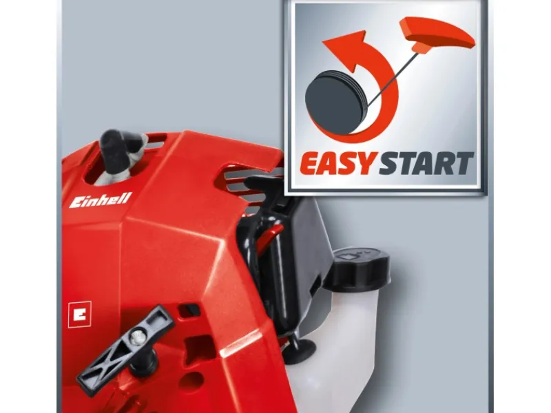 Auch nach längerem Nichtgebrauch ist der Trimmer problemlos einsatzbereit. Die Quick Start Funktion mit gut erreichbaren Primer und Auto-Chocke ermöglicht ein schnelles und bequemes Starten. Bei Betrieb wird durch die digitale Zündung und die damit verbundene dynamische Gasannahme ein stabiler Motorlauf gewährleistet. Ebenso verlaufen Wartung und Pflege problemlos. Der 0,45 Liter Tank kann durch die speziell platzierte Einfüllöffnung einfach und sicher befüllt werden und die Doppelfadenspule kann werkzeuglos ausgetauscht werden. Nach Einsatz des Trimmers kann dieser dank des Aluminium Split-Schafts platzsparend gelagert und transportiert werden.