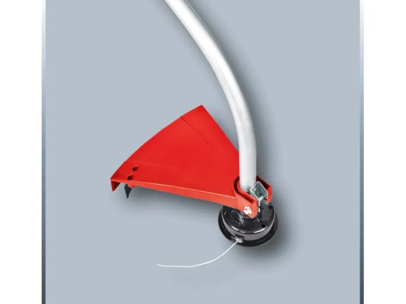 Im Leerlauf wird die Fadenspule durch die Fliehkraftkupplung ausgekoppelt und Kraftübertragung unterbunden. Ebenso dient die große Fadenschutzhaube zu Ihrem Schutz während des Betriebs. Kontakt mit dem Nylonfaden wird verhindert und aufwirbelnde Steine werden aufgefangen.