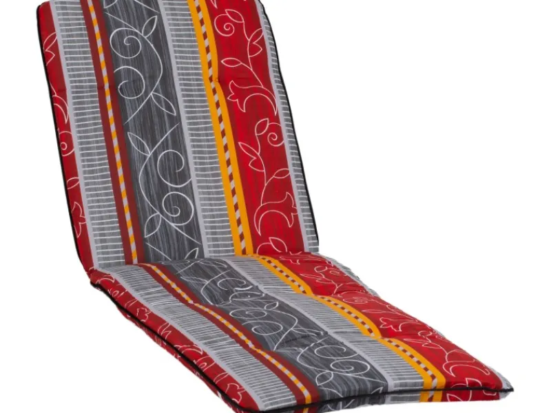 Mit der Beo Paspelauflage aus der Serie Emira im Design Grau-Rot-Gelb-Ranke sitzen Sie auch an längeren Abenden stets bequem und genießen entspannte Stunden in ihrem Garten oder auf Ihrem Balkon. Die Auflage ist speziell für Gartenliegen konzipiert und mit den Abmessungen 193 cm x 60 cm bei einem Gewicht von ca. 1 kg rechteckig gefertigt. Eine hochwertige 5 cm starke Polsterung sichert Ihnen einen dauerhaft sehr guten Sitzkomfort. Die langlebige und robuste Emira-Auflage besteht zu 50 % aus Baumwolle und zu 50 % aus Polyester. Dieser Materialmix gewährleistet sowohl ein angenehmes Hautgefühl als auch höchste Belastbarkeit. Sie ist von Hand gefertig. Sie können Ihre Beo Paspelauflage Emira von Hand bis max. 30 °C reinigen.