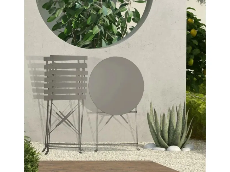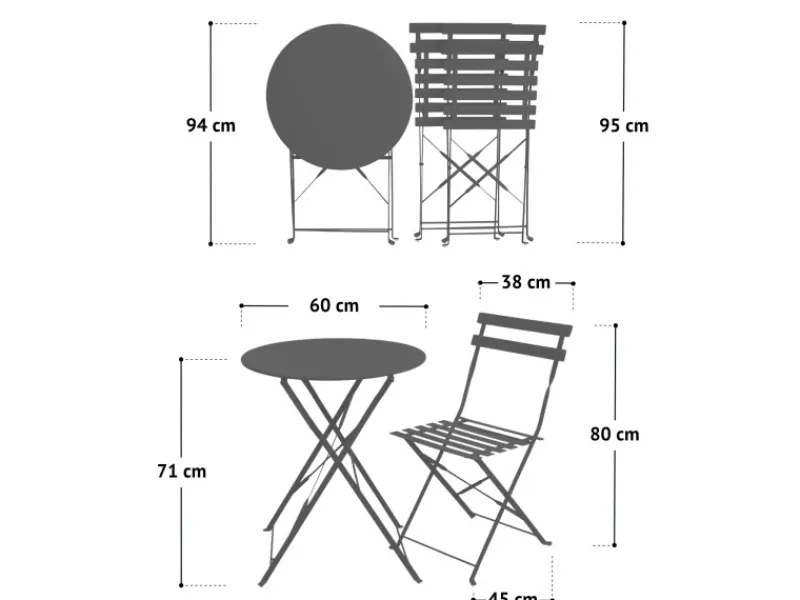 Tisch: ca. Ø 60 cm, 71 (H) – Stuhl: ca. 80 x 45 x 38 (H x L x B) – Platsparend klappbar