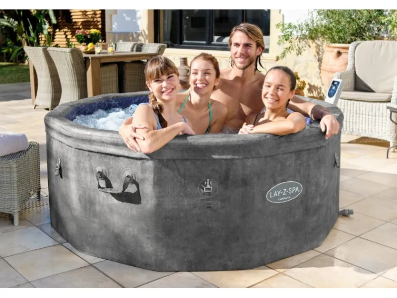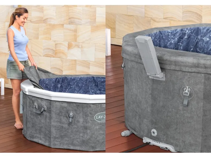 Der Bestway Whirlpool Carrara AirJet wird mit einer zweiteiligen isolierenden Thermo-Abdeckung, einem Chemikaliendosierer ChemConnect, einer Filterkartusche Gr. VI, vier gepolsterten Schaumkissen und zwei Reparaturflicken geliefert. Alles, was du für ein unvergessliches Wellness-Erlebnis benötigst, ist im Lieferumfang enthalten.
