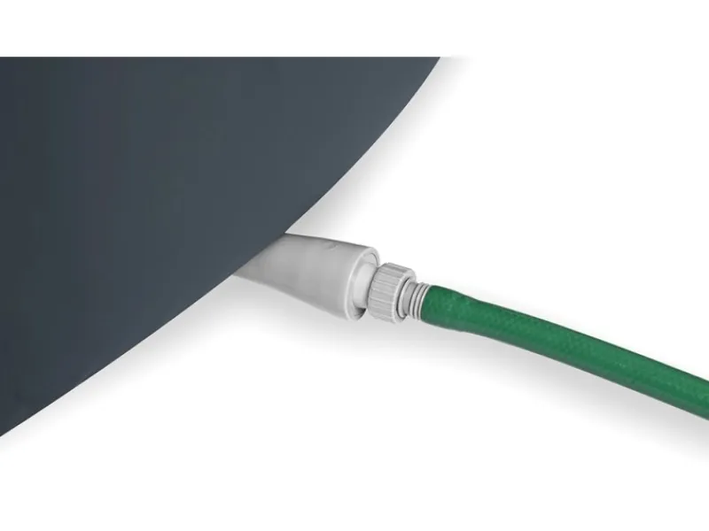 – Integriertes Ablassrohr mit Gartenschlauchadapter