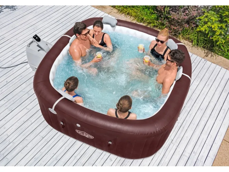 Der Whirlpool besticht durch seine edle Mahagoni-Optik, die deinem Außenbereich eine warme und luxuriöse Note verleiht. Das stilvolle Design fügt sich harmonisch in jede Garten oder Terrassengestaltung ein und schafft eine einladende Atmosphäre für dich und deine Gäste.