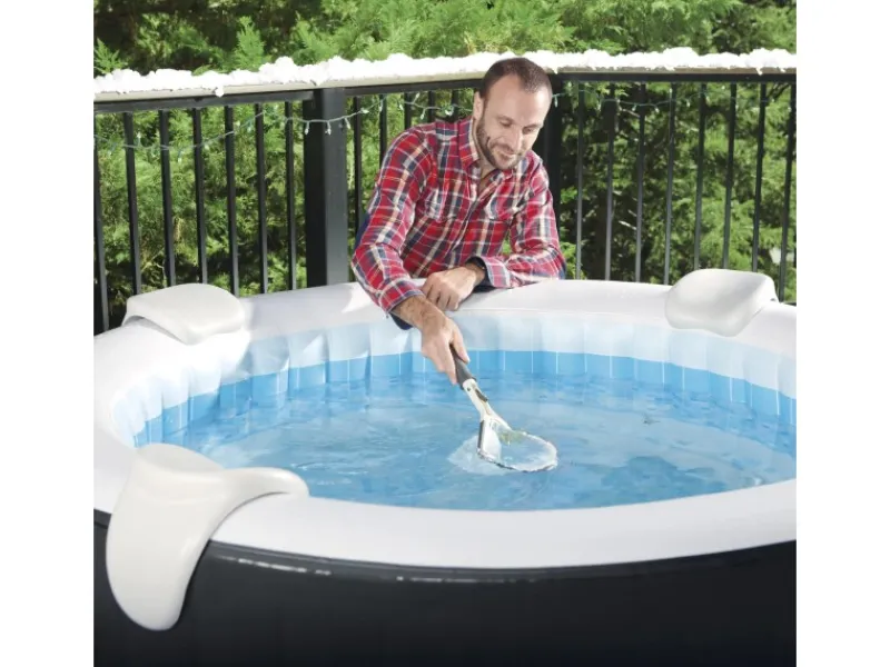 Mit der Pool-Handbrüste schrubben Sie bequem die Spa-Oberfläche. Die weichen Nylon-Borsten und der Gummirand sind dabei besonders schonend zum Spa-Inneren und zur Poolfolie.