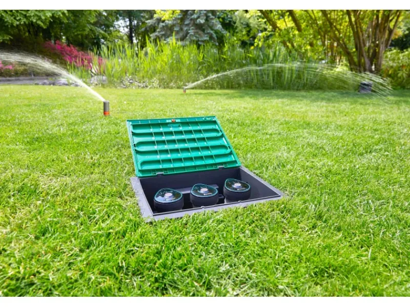 Mit Gardena Bodenfeuchtesensor einsetzbar.